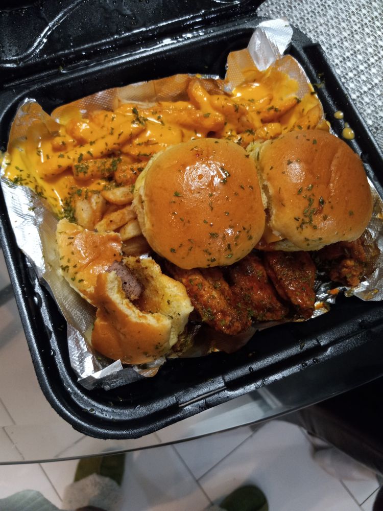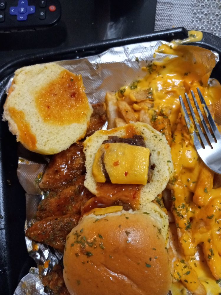 Burger Sliders Load Fries Cheese & Bacon With Wings
